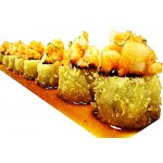 crab meat, asparagus, cream cheese deep fried topped with spicy scallop, crunchy & green onion