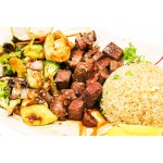 sirloin steak and mushroom grilled with homemade teriyaki sauce