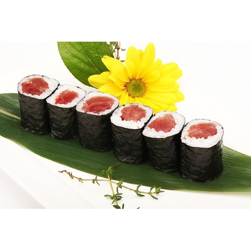 tuna and sushi rice rolled with seaweed outside